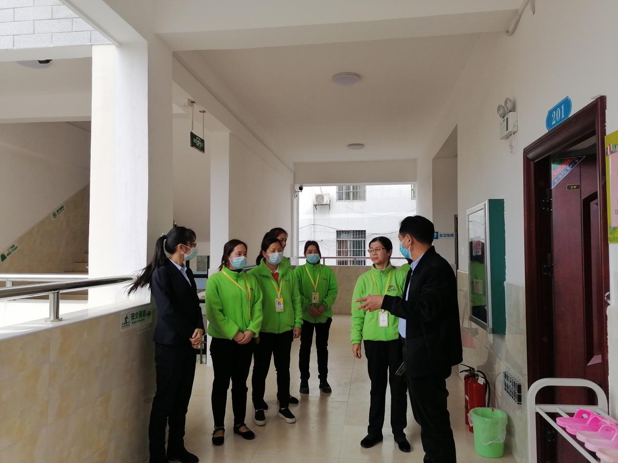 ????????3月2日,2021年春季學期開學第一天,右江區(qū)教育局到益眾托管濱江小學校區(qū)檢查學生托管安全工作開展情況,濱江小學校領導、益眾托管公司有關負責同志陪同檢查。