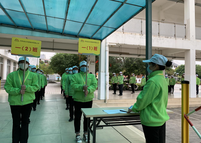 ???聞令而動,益眾托管公司相關(guān)部門與各校區(qū)立即行動起來,清點防疫物資、整理完善臺賬、購買配齊防疫設(shè)備材料、布置校區(qū)現(xiàn)場、開展模擬演練……