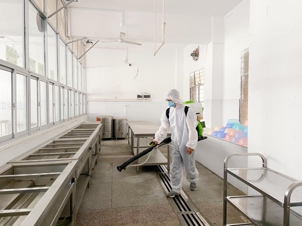 ??? 為筑牢疫情防控校園防線,打造真正安全、衛(wèi)生的校園環(huán)境,益眾托管濱江校區(qū)在百色協(xié)和醫(yī)院大力支持下,全面開展消毒防疫工作,對(duì)托管樓宿舍、廚房、食堂、樓道、衛(wèi)生間等區(qū)域進(jìn)行全面消毒,為師生構(gòu)筑安全屏障,以一個(gè)安全、衛(wèi)生的校區(qū)面貌靜候孩子們的歸來。(通訊員:黃桂珍)