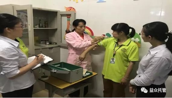 醫(yī)療角成立后,校區(qū)管理人員邀請了逸夫小學(xué)校醫(yī)梁惠珍老師為校區(qū)工作人員培訓(xùn)急救包扎、清創(chuàng)等技能,為托管工作人員普及急救知識(shí)。